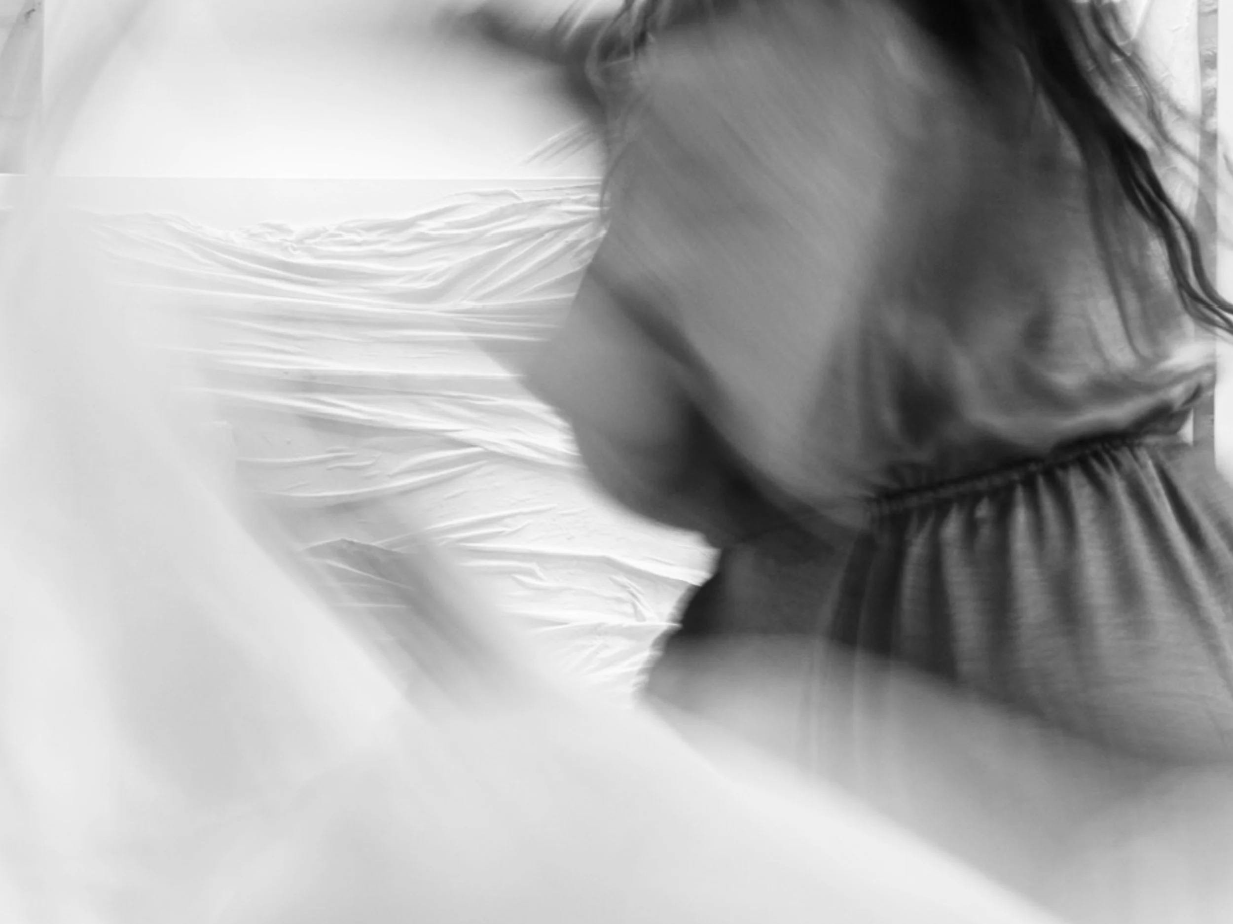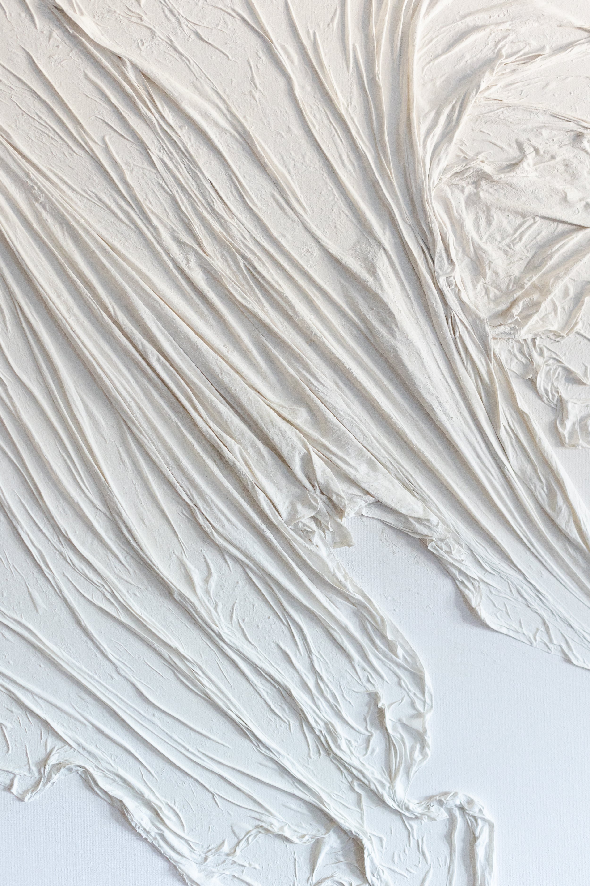 Flow is the quiet state my work invites—a soft continuity between stillness and movement. Sculpted in white silk, each piece holds the memory of breath: the rise and release you feel when you slow down. Light gathers and loosens along the folds; shadows drift; attention widens.